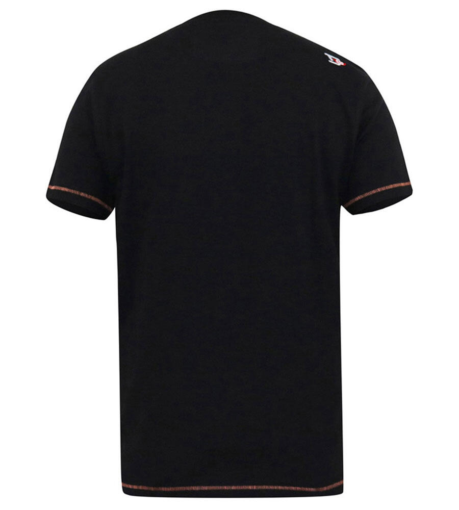 T-shirten har rund hals og der er orange stikninger i bunden samt på ærmerne. Bagpå højre skulder er et lille D555 broderi. Nederst på T-shirten er et lille D555 mærke påsyet.