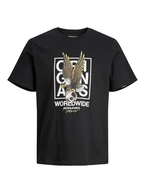 Sort T-shirt med Ørn og Skull print - Jack & Jones
