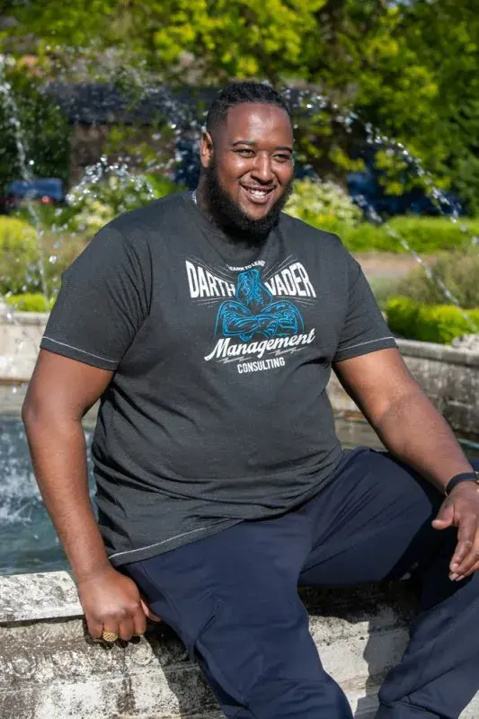 Denne sortmeleret T-shirten er et perfekt valg til fans af Star Wars / Darth Vader.