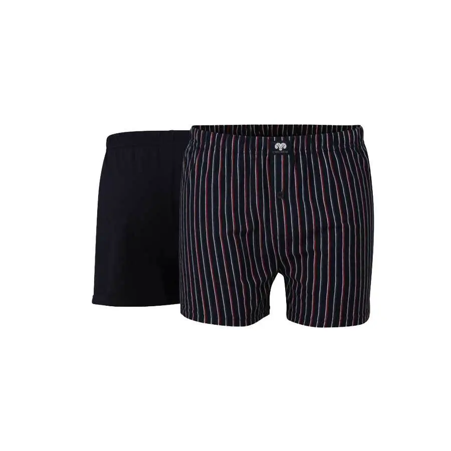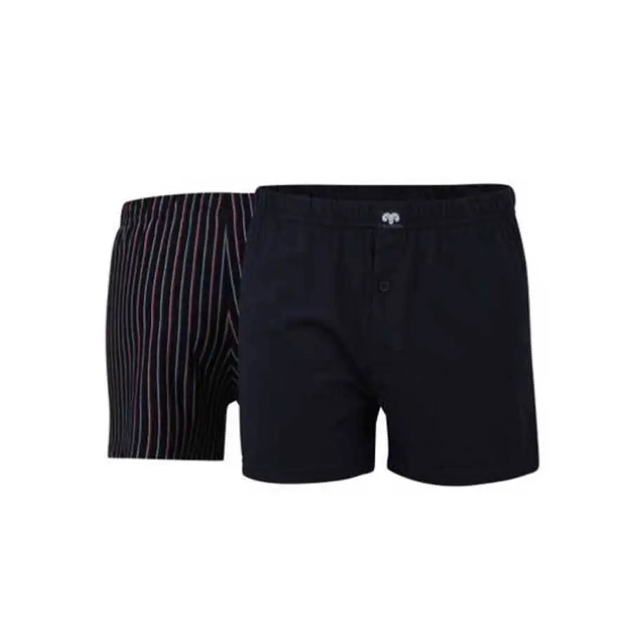 Pakning: 2 stk. boxershorts (ensfarvet navy + navy med røde og hvide striber)