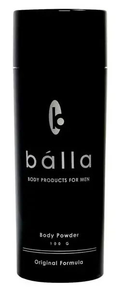 Bálla Body Powder er en talkumform, der er fuldstændig fri for alkohol, menthol, asbestfibre og parabener. Denne variant er den originale, der har en let mandig duft af træ og moskus.