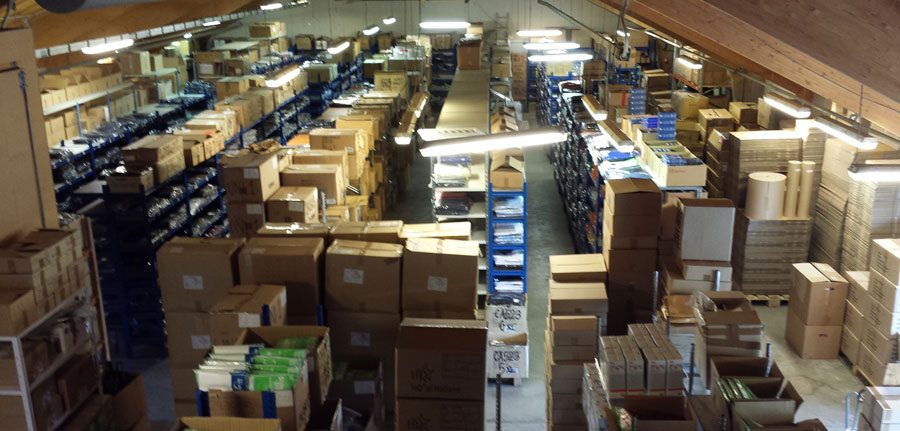 Det store udvalg af tøj medfører også behovet for et lager og nedenfor ser du vores lager set lidt fra oven. Herfra plukker og pakker vi dine varer og vi afsender bestillinger alle hverdage med både GLS og Post Danmark.