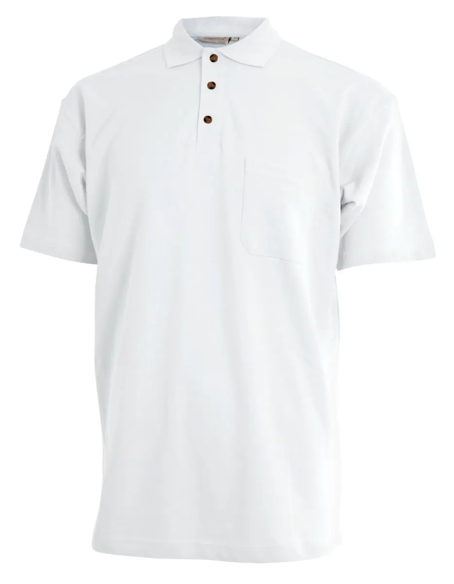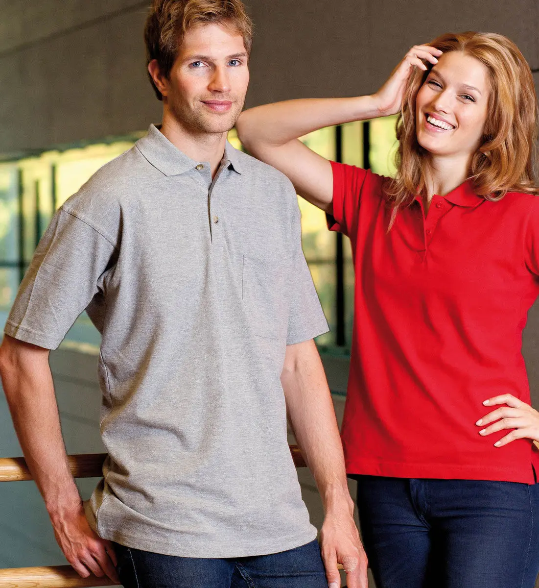 Kortærmet polo-shirt med med knapper og brystlomme. Polo-shirten er pique strikket, hvilket betyder at den har en let vaflet overflade. Modellen fås i en række forskellige farver.