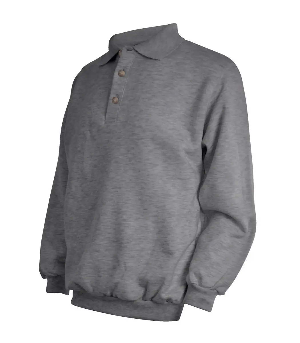 Klassisk grå-meleret sweatshirt med polokrave. Polo sweatshirten er i isoli med børstet bagside. Den er blød og lun at have på.
