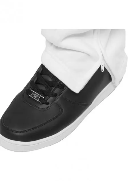 Lækre hvide sweatpants i kraftig kvalitet. Buksen er blød og varm. Der er elastik og snøre i taljen og lynlås ved foden.